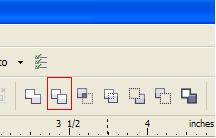 Setelah itu blok / seleksi semua objek ( elips yang sudah dicombine dengan gambar persegi panjang tersebut ) dengan Picktool pada Toolbox, lalu klik menu arrange -> shaping -> Trim atau klik icon seperti ini