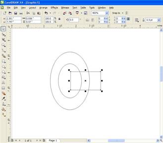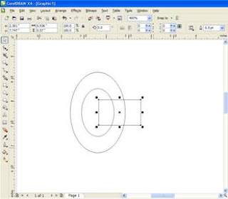 Lalu seleksi / blok kedua elip tersebut, kemudian Klik menu Arrange -> Combine atau klik tools Combine yang sudah ada di toolbar jika iconnya sudah diaktifkan. Setelah itu buat persegi panjang dengan Rectangle tool di Toolbox yang diletakkan seperti gambar dibawah :